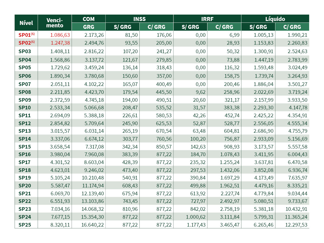 Tabela SPs