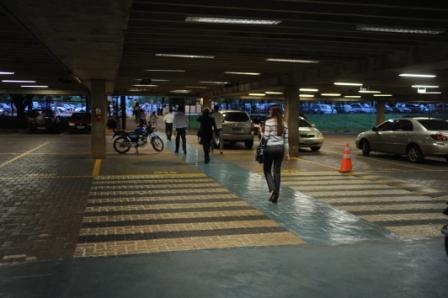 Rota acessível na garagem coberta do Anexo IV da Câmara dos Deputados