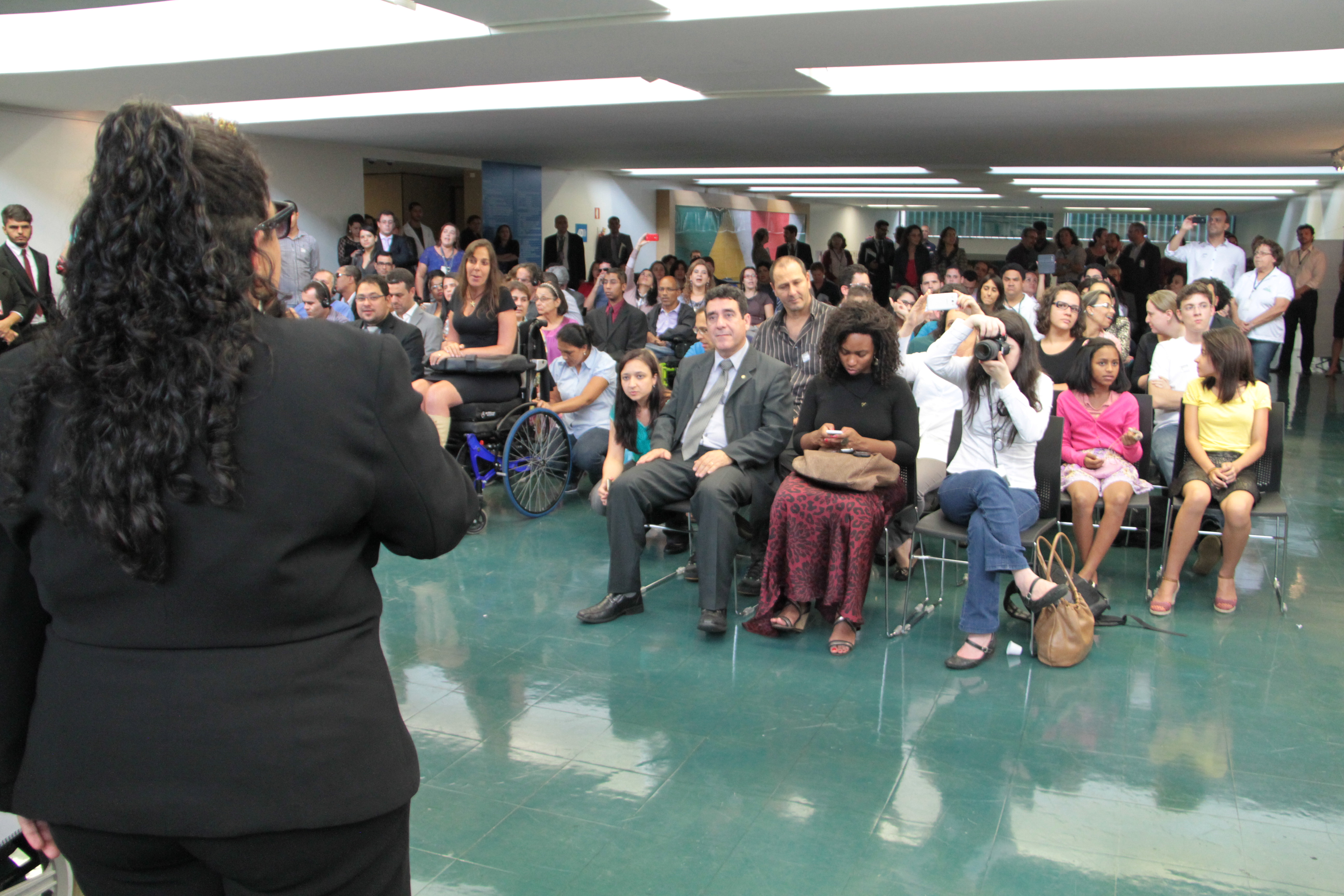 Daniela Ribeiro, cantora, em apresentação musical no Dia da Acessibilidade 2014