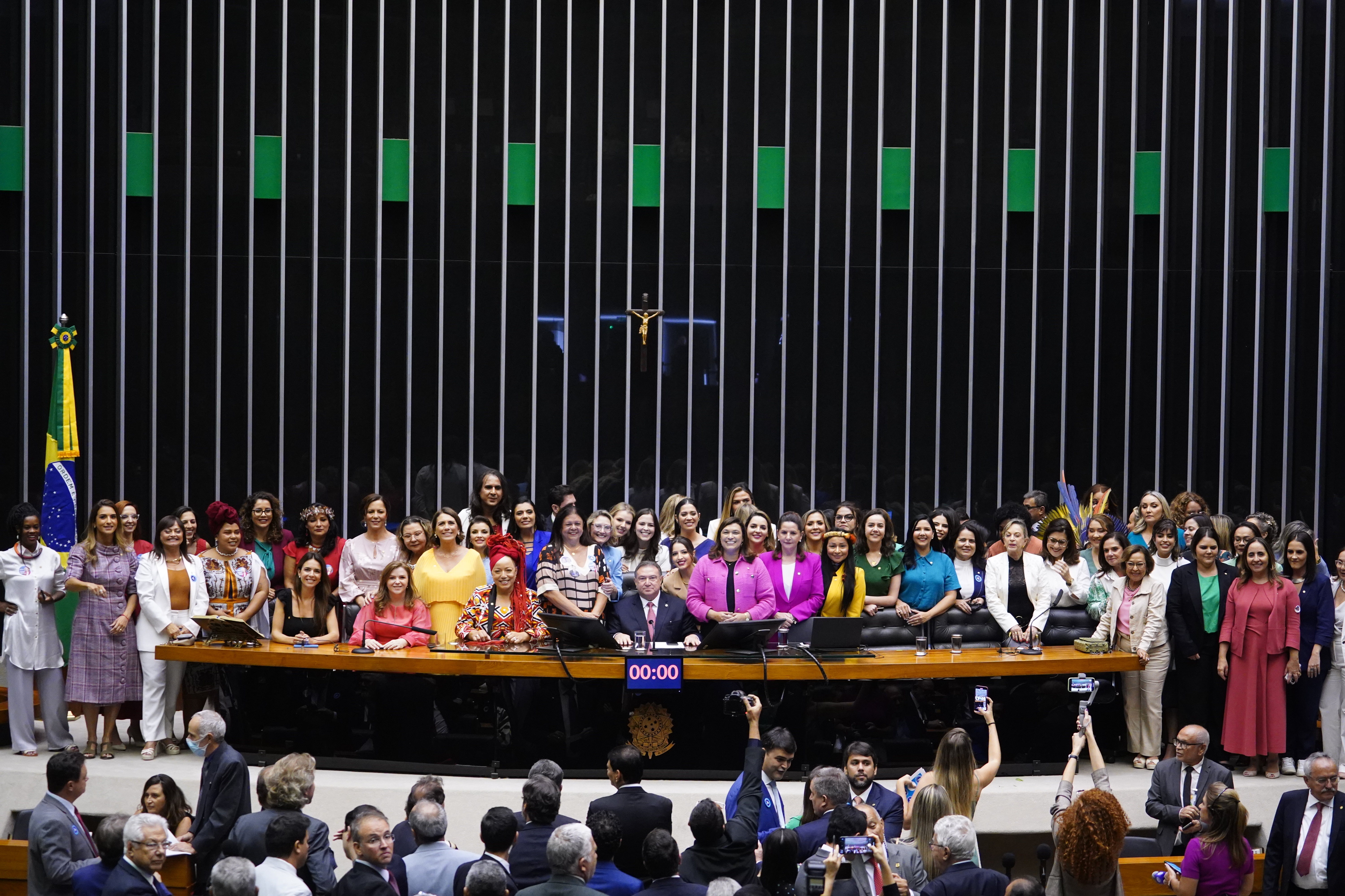Bancada feminina em Plenário durante sessão de posse da 57a Legislatura