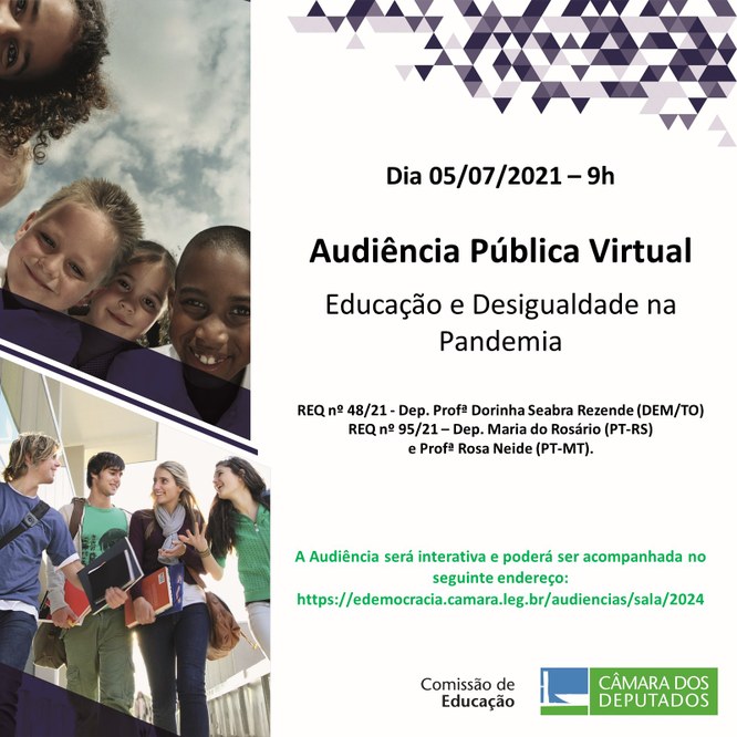 Participe da Audiência Pública, em 05/07/21, sobre "Educação e desigualdade na pandemia". 30/06/2021 11:15