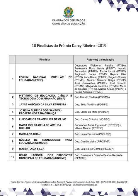 Reunião de apuração dos 10 finalistas do Prêmio Darcy Ribeiro de Educação – 2019. 27/06/2019 16:30