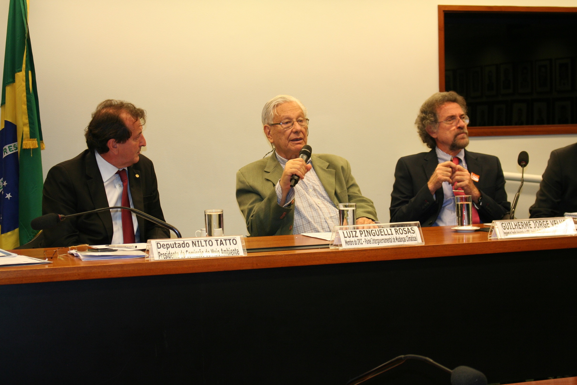 Com a fala o sr. Luiz Pinguelli Rosas, Membro do IPCC - Painel Intergovernamental de Mudanças Climáticas