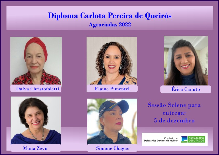 Serão agraciadas com o Diploma Mulher-Cidadã Carlota Pereira de Queirós - edição 2022: