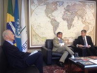 Rostyslav Tronenko fala sobre a crise na Ucrânia aos deputados Eduardo Barbosa e Antonio Carlos Mendes Thame em reunião na CREDN