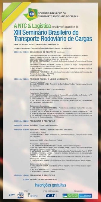 XIII Seminário Brasileiro do Transporte Rodoviário de Cargas 18/04/2013 18:20